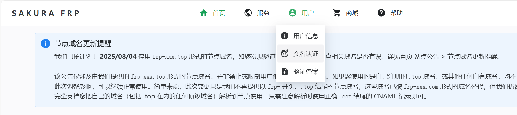 然后点击用户–实名认证,按步骤进行实名认证(不实名认证无法使用内网穿透)