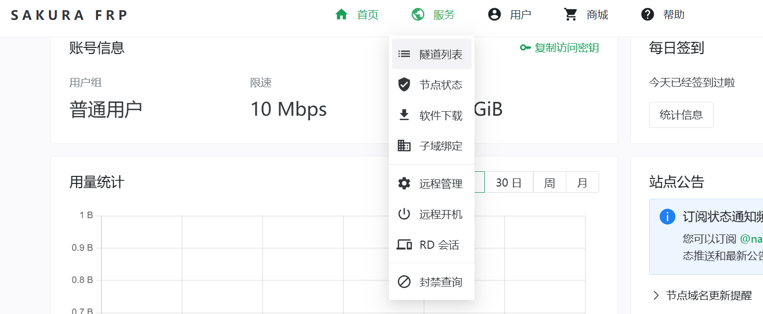 点击服务–隧道列表,再点击创建隧道