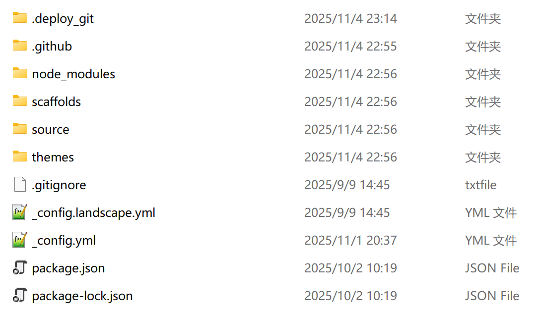 | node_modules | hexo需要的模块,就是一些基础的npm安装模块,比如一些美化插件,在执行npm install的时候会重新生成 |