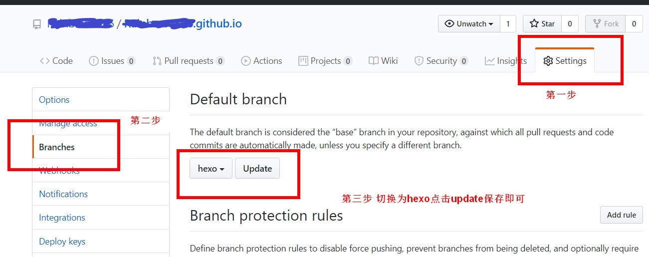 在我们第一次部署好博客的时候,github给我们创建的唯一一个分支就是master分支,同时也是默认分支。默认分支就意味着每次我们执行git clone 仓库地址或者git pull 仓库地址拉取的是默认分支的代码。